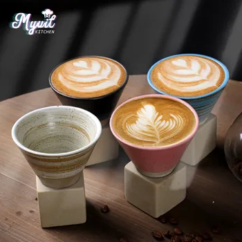 Taza de café de cerámica Retro creativa de 200ML, taza de té de cerámica en bruto, taza de porcelana con flor de café con leche japonesa, nueva Taza de cerámica para el hogar